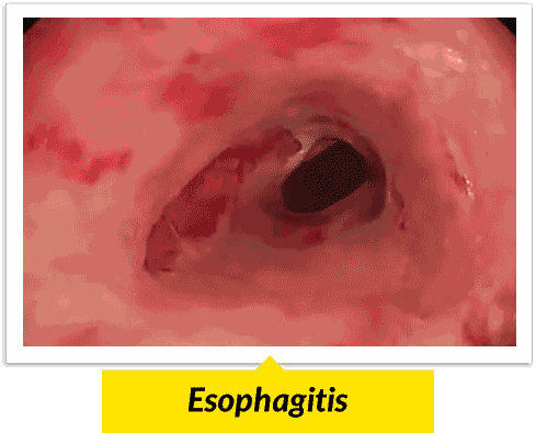 If you look closely, there are a few erosions and redness on the esophagus walls.