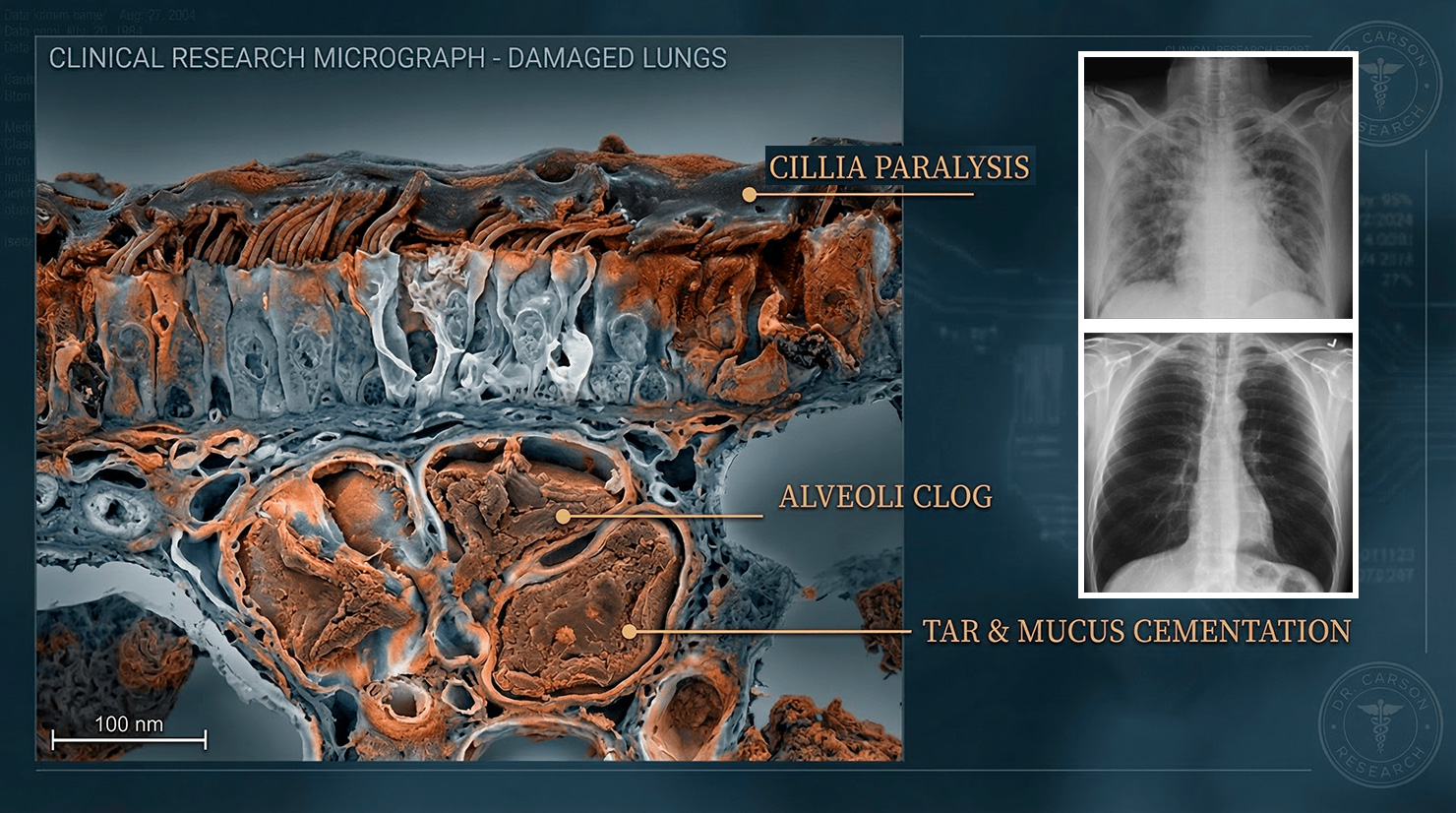 Your Alveoli are encased in thick, hardened mucus-like a filter caked in years of grease.