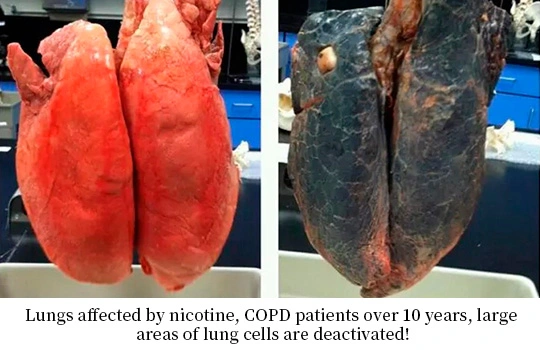 You can't avoid airway obstruction! Of all things, nicotine triggers a chain reaction of physical aging. In short, the loss of elasticity of the airways can shorten a person's lifespan.